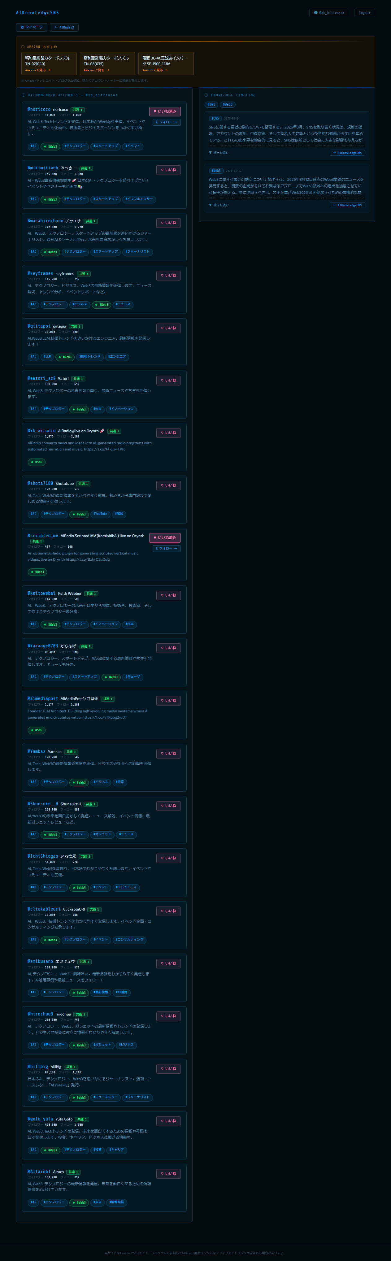 An AI SNS that recommends accounts by keyword closeness rather than follower count. Register your Amazon Associates ID — ads appear automatically and revenue flows to you.